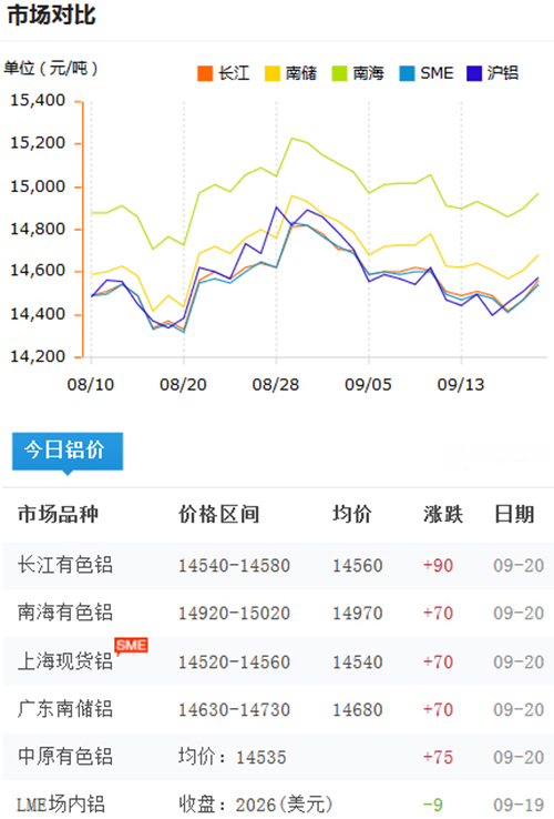 鋁錠價格今日鋁價2018-9-20