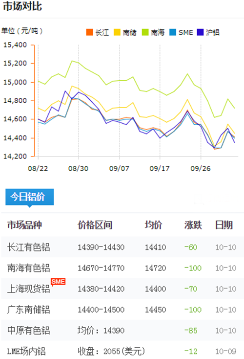 鋁錠價格今日鋁價2018-10-10