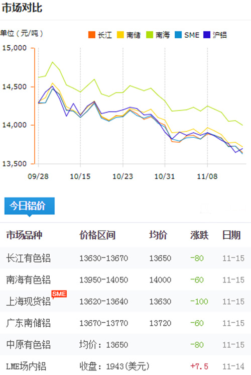 鋁錠價格今日鋁價2018-11-15