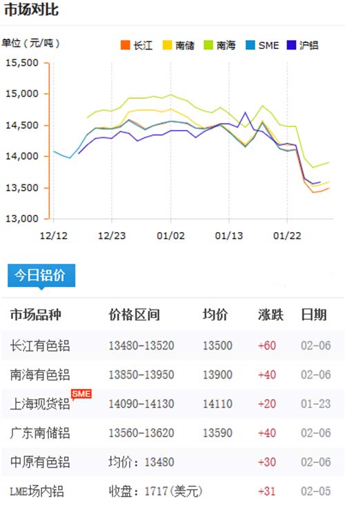 鋁錠價格今日鋁價2020-02-06