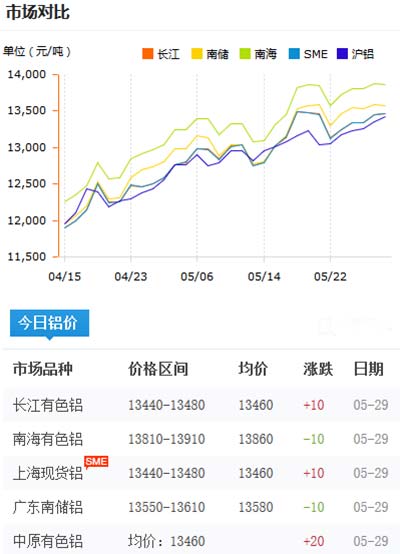 鋁錠價格今日鋁價2020-05-29