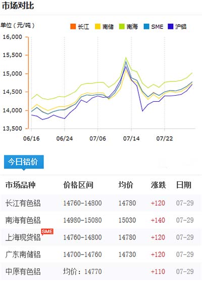 鋁錠價(jià)格今日鋁價(jià)2020-07-29