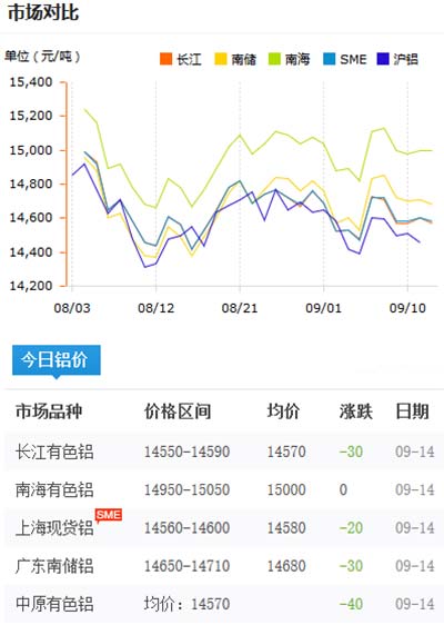 鋁錠價格今日鋁價2020-09-14