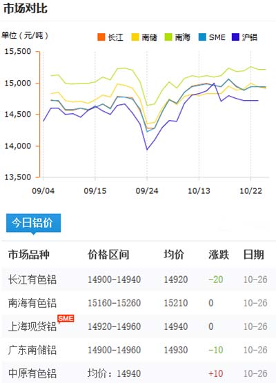 鋁錠價格今日鋁價2020-10-26