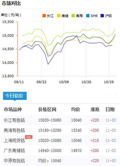 鋁錠價格今日鋁價2020-11-02