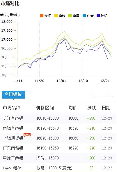 鋁錠價格今日鋁價2020-12-23