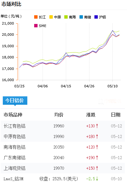 鋁錠價格今日鋁價2021-05-12