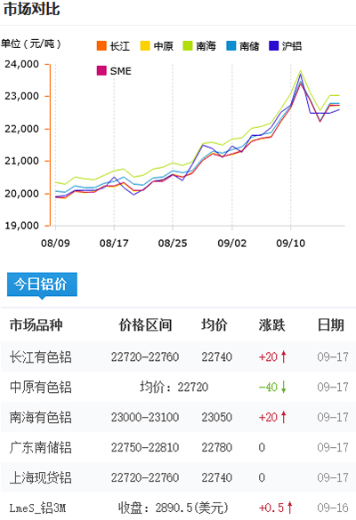 鋁錠價格今日鋁價2021-09-17