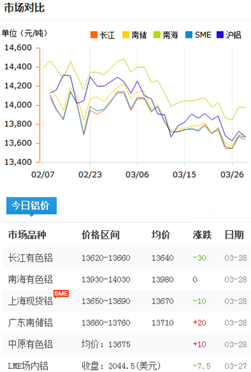 鋁錠價格今日鋁價2018-3-28