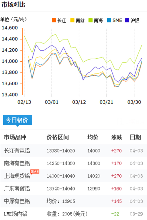 鋁錠價格今日鋁價2018-4-3